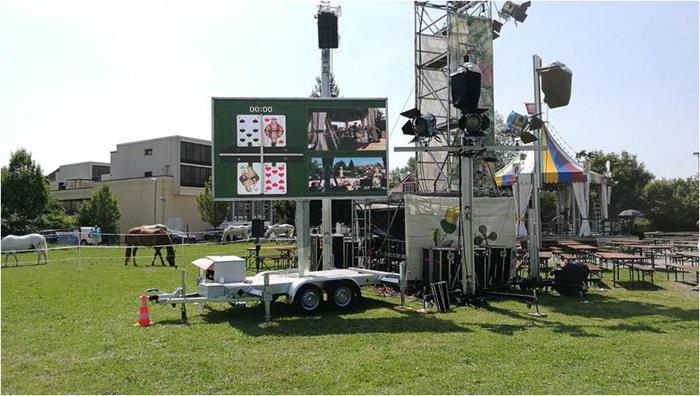 Baru-baru ini kami baru sahaja membina dinding LED P5 luar yang dipasang pada treler mudah alih untuk pelanggan Switzerland. LED terkapsul wayar emas Nationstar, IC pemacu frekuensi penyegaran tinggi MBI5151, kabinet aluminium dan bekalan kuasa Meanwell. Dinding diterajui yang dipasang oleh bahan mentah dan komponen berkualiti tinggi ini, pelanggan cukup gembira dengan prestasi hebat treler mudah alih yang diterajui itu.