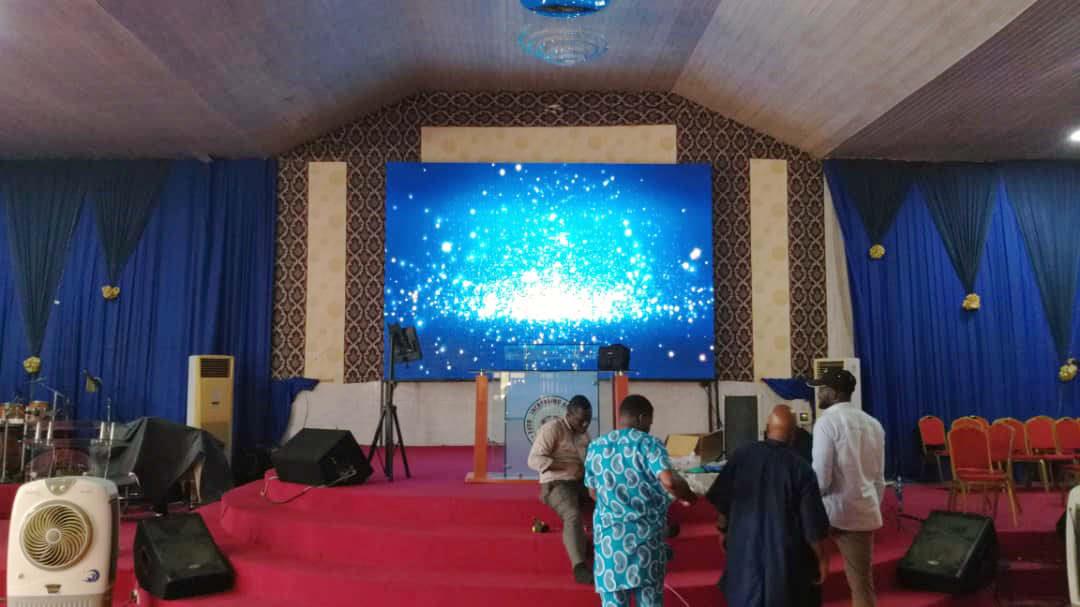 Perkhidmatan hadapan dalaman mengetuai dinding video untuk gereja di Nigeria